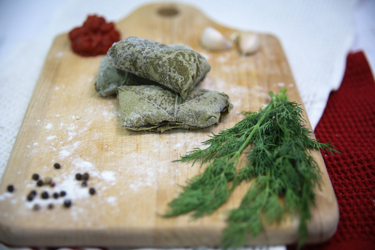 500gСостав: фарш говядины, томаты, перец болгарский, чеснок, кинза, листья винограда)