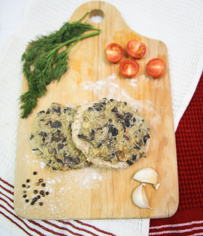 650gСостав: фарш говядина, лук, шампиньоны, сметана, соль.